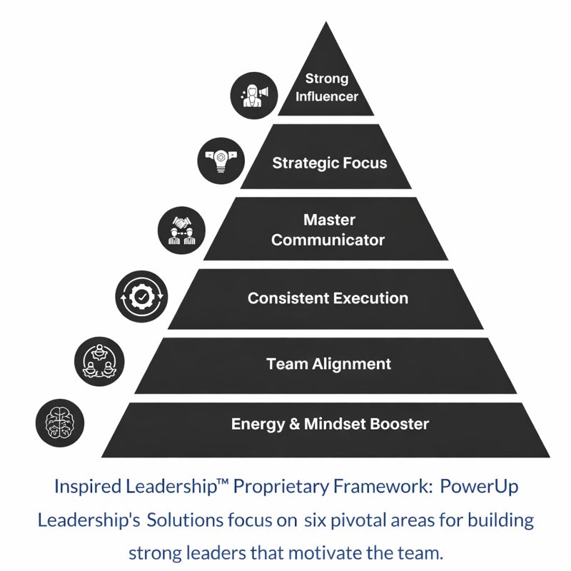 PowerUp Leadership's leadership solutions tap into our proprietary leadership framework to build leaders who communicate with energy, authenticity, influence, purpose, and clarity.